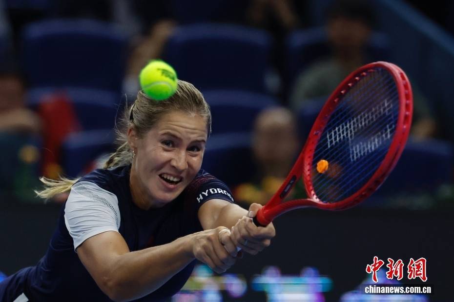 9月24日,在北京进行的2025中国网球公开赛女单第一轮中,中国选手张帅以总比分2比1战胜扎哈洛娃,晋级下一轮。图为扎哈洛娃在比赛中。中新社记者 韩海丹 摄