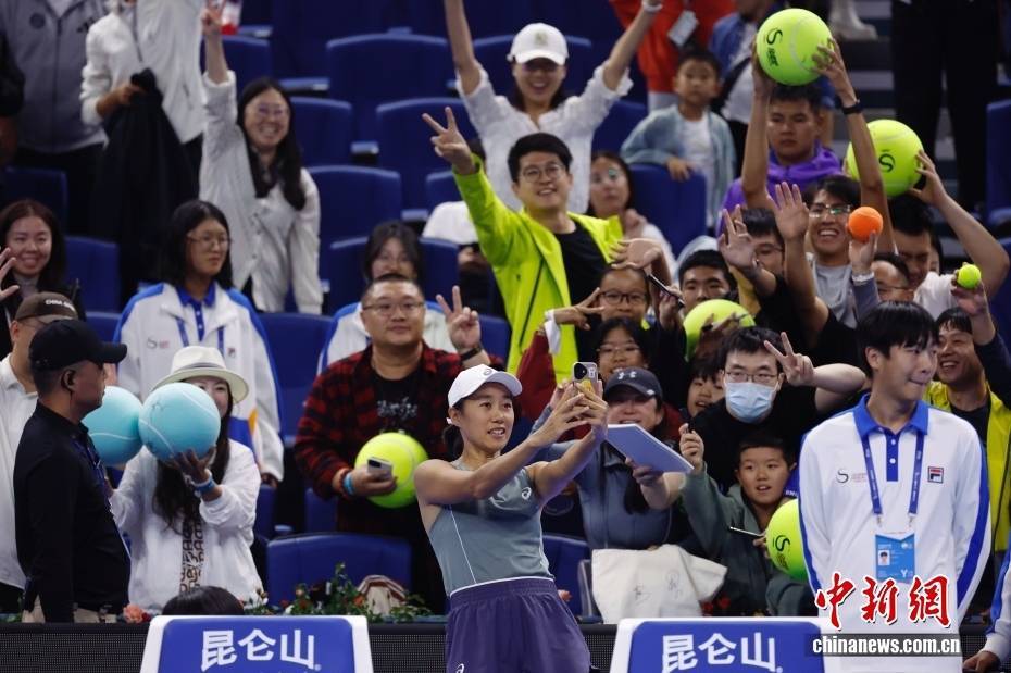 9月24日,在北京进行的2025中国网球公开赛女单第一轮中,中国选手张帅以总比分2比1战胜扎哈洛娃,晋级下一轮。图为张帅在比赛后与球迷互动。中新社记者 韩海丹 摄返回搜狐,查看更多