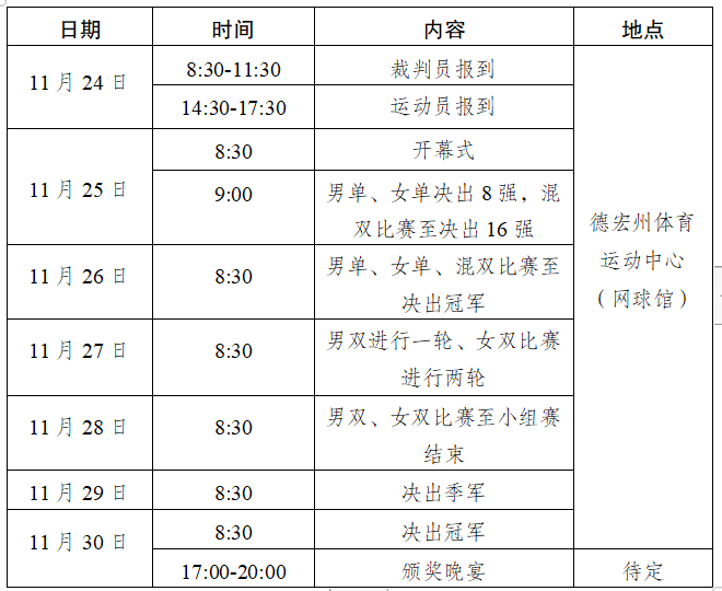 (九)报名办法:各参赛选手于2025年10月20日至11月19日在“网球记”小程序上按要求进行报名,本次比赛报名费200元/队,从报名开始队伍报满截止报名(逾期不接受报名);各参赛人员食宿费、交通费、保险费等自理。