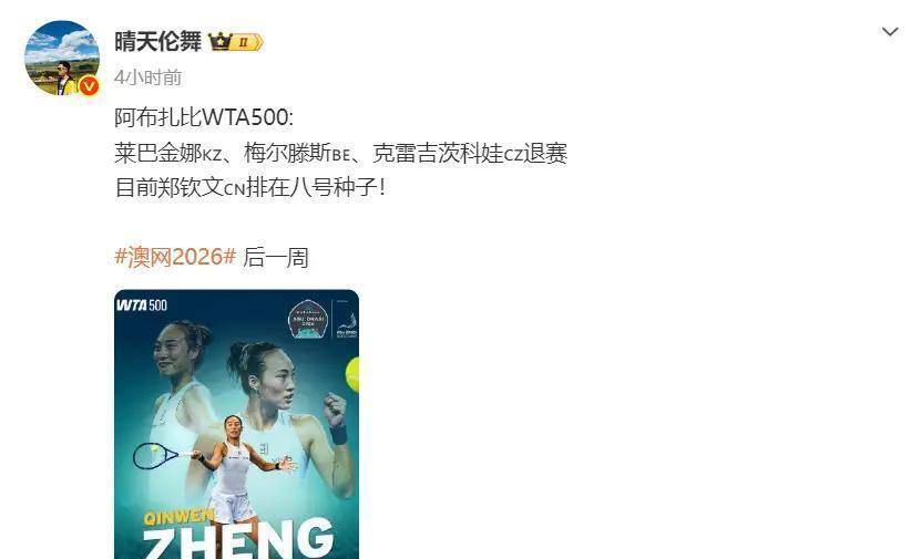 今年1月8日,郑钦文通过社交媒体宣布退出2026年澳大利亚网球公开赛。 她在声明中表示:“做出这个决定,对我来说无比艰难。 墨尔本是我职业生涯的‘福地’——这里不仅见证了她的大满贯首胜,更留下了2024年闯入女单决赛的荣耀时刻。 ”