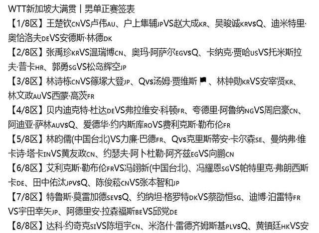 国乒虽然不用打资格赛,但正赛签表已经让球迷炸锅。王楚钦首轮抽到澳大利亚选手卢伟看似轻松,可上半区藏着手术野隼辅和奥恰洛夫两大“魔王”,更别提还有刚在日本联赛横扫张本智和的松岛辉空。林诗栋更惨,首轮就撞上日本队的篠塚大登,这小子去年亚青赛可是把国乒二队主力打到摔毛巾的狠角色。最刺激的是下半区的陈俊菘,直接硬刚张本智和,这场00后对决的票已经被黄牛炒到原价三倍。