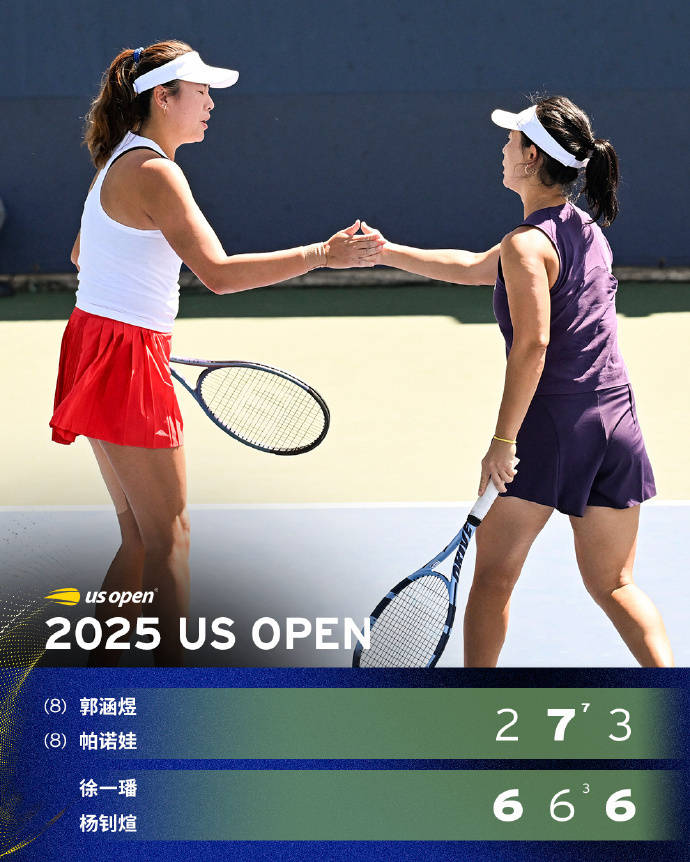 今年美网女双比赛,种子排名最高是郭涵煜,她继续搭档俄罗斯选手帕诺娃出战,她们是赛会8号种子出战。女双第一轮, 她们59分钟内就打卡收工,6-1/6-3横扫德西乌克/普里丹金娜组合。